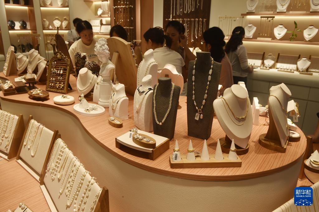 10月14日,顾客在新开业的义乌全球数贸中心的商铺内选购商品。新华社记者 鲁鹏 摄